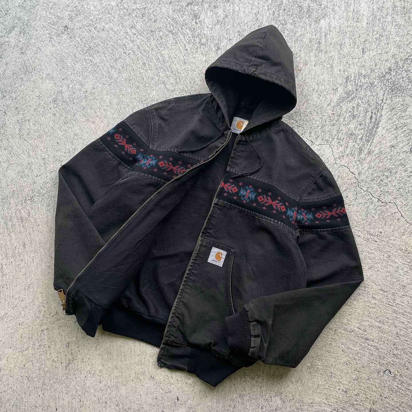 Vintage Solid Lined Aztec Hooded Jacket
